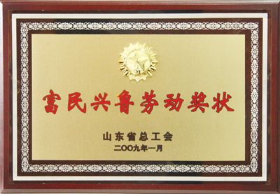 2009年1月山東省總工會授予“富民興魯勞動獎狀”