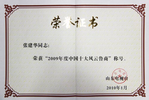 張董事長榮獲“2009年度中國十大風云魯商”稱號
