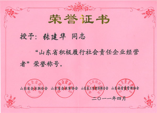 山東省積極履行社會(huì)責(zé)任企業(yè)經(jīng)營(yíng)者榮譽(yù)稱號(hào)