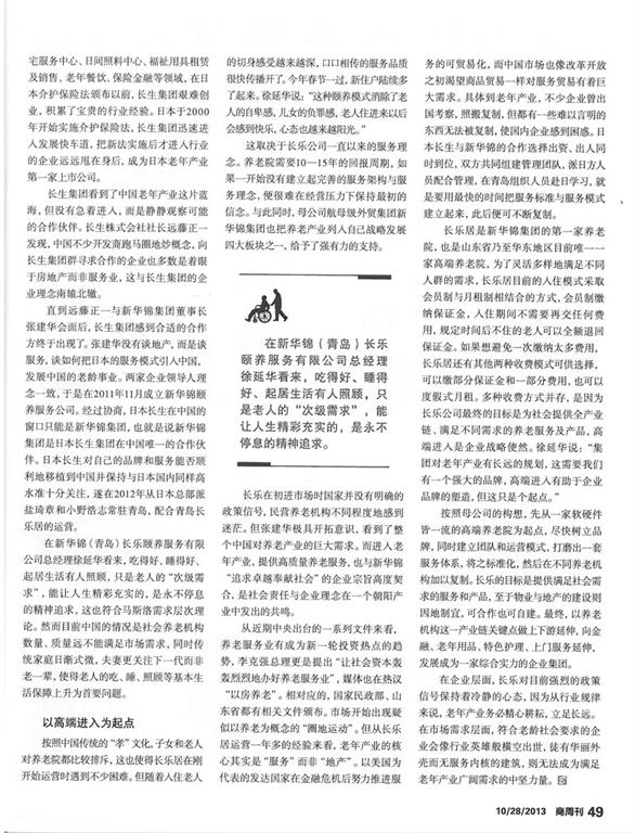 ? 新華錦長樂:老年產(chǎn)業(yè)樣本(商周刊) - 媒體報道 - :: HIKING GROUP 新華錦首頁(國際貿(mào)易)(金融投資)(老年頤養(yǎng)) ::
