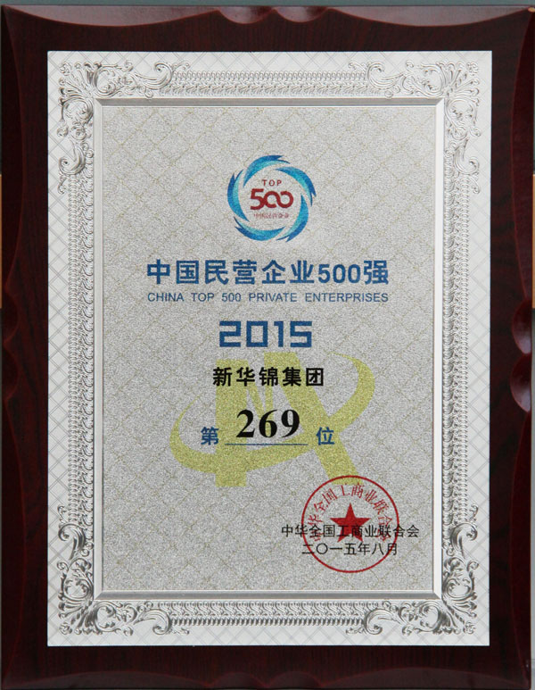 ? 2015中國民營企業(yè)500強(qiáng)中第269位 - 2015 - :: HIKING GROUP 新華錦首頁(國際貿(mào)易)(金融投資)(老年頤養(yǎng)) ::