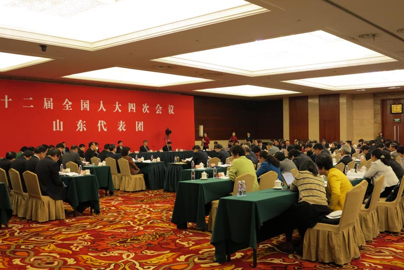 3月8日上午,出席十二屆全國(guó)人大四次會(huì)議的山東代表團(tuán)舉行第四次全體會(huì)議,審查計(jì)劃報(bào)告和預(yù)算報(bào)告。山東代表團(tuán)團(tuán)長(zhǎng)
