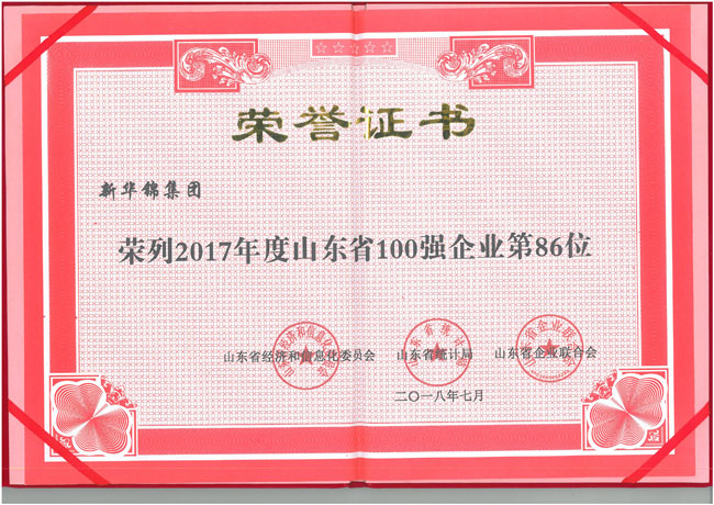 2017年度山東省100強(qiáng)企業(yè)第86位