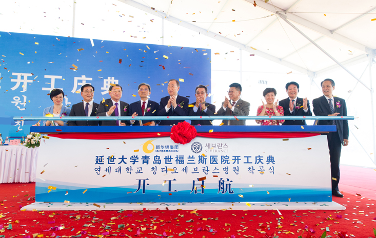 第八任聯(lián)合國秘書長、博鰲亞洲論壇理事會(huì)理事長、延世大學(xué)“國際社會(huì)貢獻(xiàn)院”名譽(yù)院長潘基文先生,原韓國國務(wù)總理韓升洙先生,延世法人理事會(huì)理事長許東秀先生,延世大學(xué)總校友會(huì)會(huì)長樸三求先生,延世大學(xué)總長金用學(xué)先生,韓國駐中國大使館大使盧英敏先生,延世法人理事會(huì)理事樸昌一先生,延世醫(yī)療院院長尹道欽先生,韓國保健振興院院長李永燦先生,韓國保健福祉部醫(yī)療政策室長姜都泰先生,韓國駐青島總領(lǐng)事館總領(lǐng)事樸鎮(zhèn)雄先生,延世醫(yī)科大學(xué)總校友會(huì)會(huì)長韓承慶先生,延世大學(xué)法人本部長洪復(fù)基先生,延世新村醫(yī)院院長李炳奭先生,韓國柳韓洋行社長李貞熙先生等韓方嘉賓。全國政協(xié)外事委員會(huì)副主任韓方明先生,青島市副市長欒新女士,山東省衛(wèi)計(jì)委副主任仇冰玉先生,山東省外事僑務(wù)辦公室副主任陳白薇女士,山東省商務(wù)廳副廳長呂偉女士,青島市政府副秘書長王哲先生,青島市衛(wèi)計(jì)委主任楊錫祥先生,青島市嶗山區(qū)區(qū)長趙燕女士,青島市政府外事辦公室巡視員高群先生,青島市商務(wù)局巡視員邢立志先生,青島市嶗山區(qū)副區(qū)長楊聚鈞先生等國家、省、市、區(qū)領(lǐng)導(dǎo),以及我集團(tuán)張建華董事長、劉篤平總裁和集團(tuán)各單位部門主要負(fù)責(zé)人出席慶典儀式。