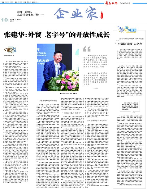 勇于創(chuàng)新、開放性成長,使“老字號”煥發(fā)了新活力。張建華認為,困難和挑戰(zhàn),是企業(yè)遇到的常態(tài),而迎難而上,永葆創(chuàng)業(yè)激情,則是一家不斷創(chuàng)新的企業(yè)所應(yīng)有的姿態(tài)。新華錦將繼續(xù)服務(wù)國家經(jīng)濟發(fā)展大格局,增靚外貿(mào)主業(yè),在鞏固傳統(tǒng)貿(mào)易的基礎(chǔ)上,創(chuàng)新發(fā)展外貿(mào)新模式、新業(yè)態(tài),為外貿(mào)注入新動能,奠定起百年強企的堅實基礎(chǔ)。