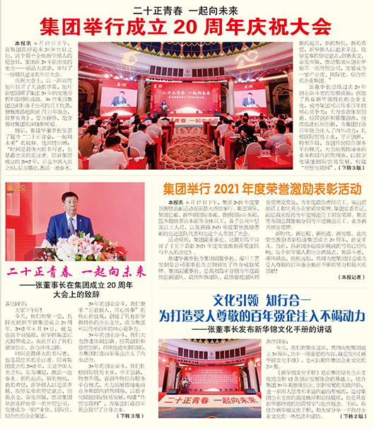 新華錦集團(tuán)成立20周年慶祝大會(huì)暨2021年度榮譽(yù)激勵(lì)表彰活動(dòng)