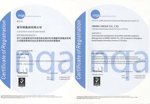 新華錦集團(tuán)有限公司通過了 ISO14001 : 2004環(huán)境管理體系認(rèn)證